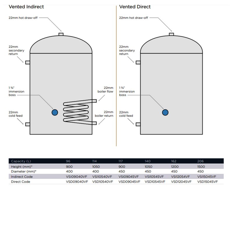 - Direct cylinders are heated by the Electric Immersion heaters only