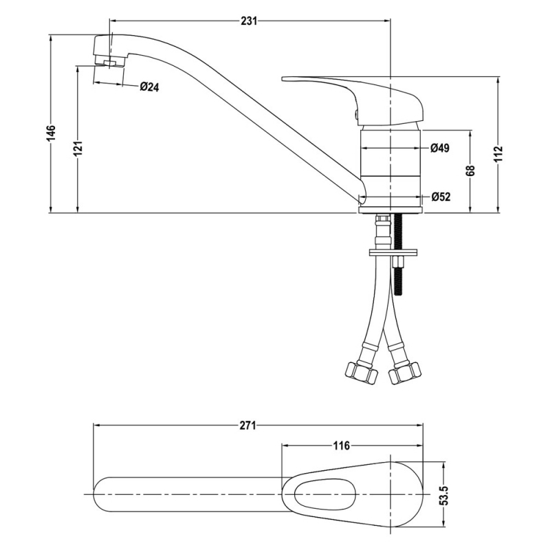 • Suitable for deck mounted installation