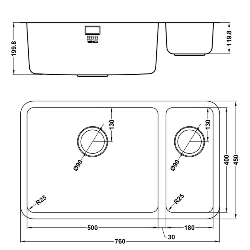Secondary Bowl Depth119.8mm