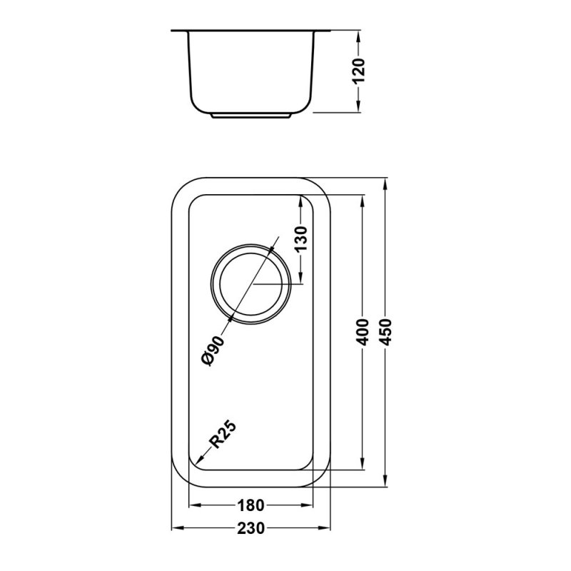 The 1810 Company Luxsoplusuno25 180U 1.0 Bowl Undermount Kitchen Sink - Stainless Steel