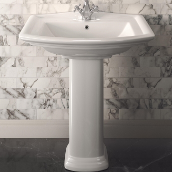 Hudson Reed Richmond Basin and Comfort Height Full Pedestal 600mm Wide - 1 Tap Hole