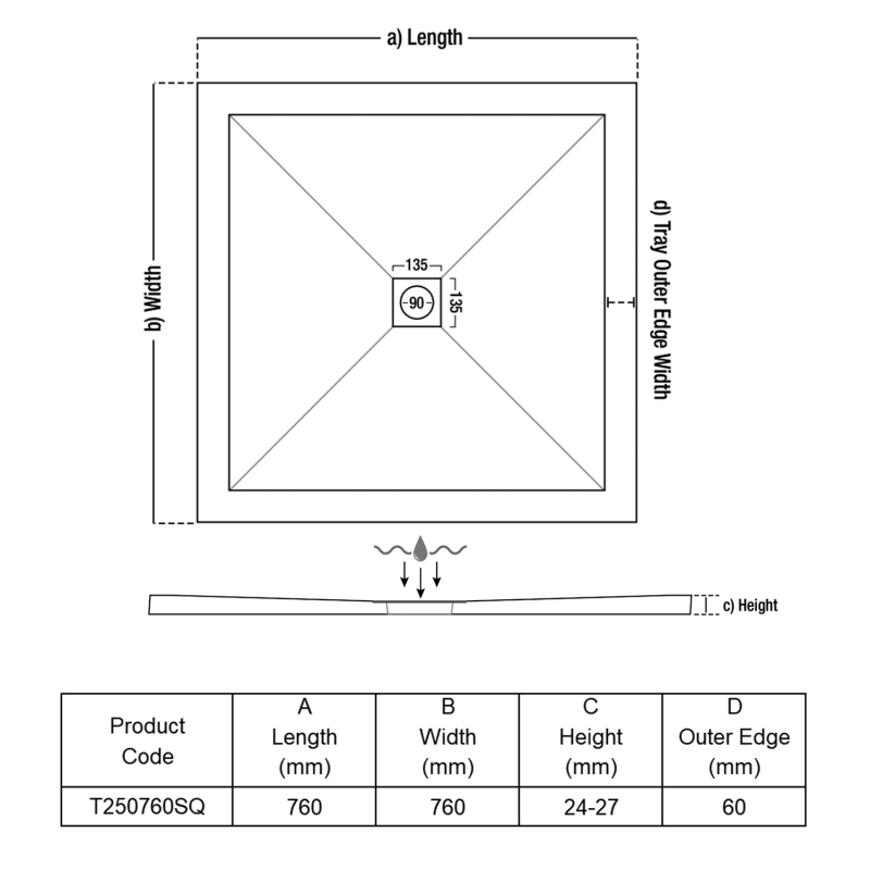 TrayMate TM25 Symmetry Square Shower Tray - 760mm x 760mm