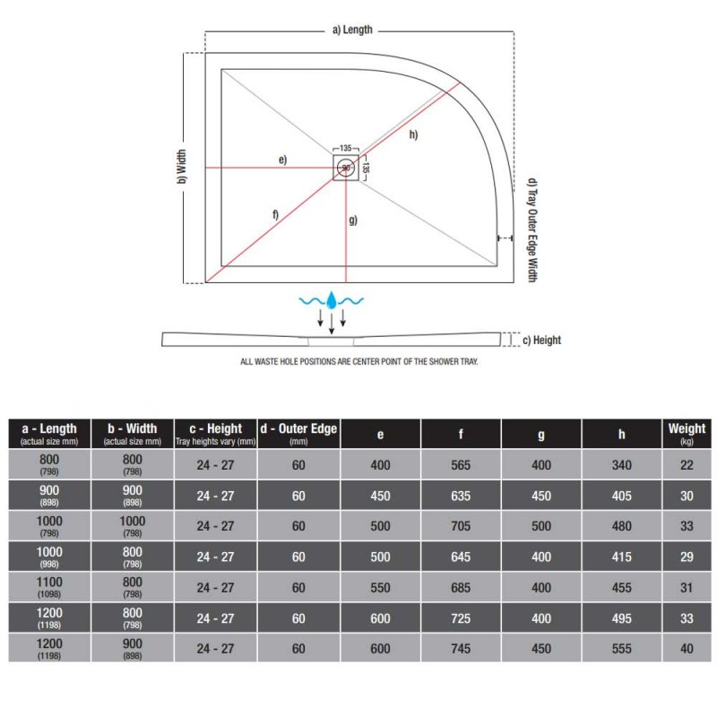 - A dedicated high flow shower waste is required - it is not included with the tray
