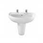 Twyford Alcona Basin & Semi Pedestal 600mm Wide 2 Tap Hole