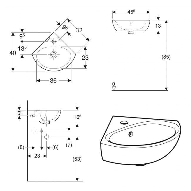 Twyford Alcona Corner Wall Hung Handrinse Basin 350mm Wide - 1 Tap Hole Twyford Alcona Corner Wall Hung Handrinse Basin 350mm Wide - 1 Tap Hole Twyford Alcona Corner Wall Hung Handrinse Basin 350mm Wide - 1 Tap Hole