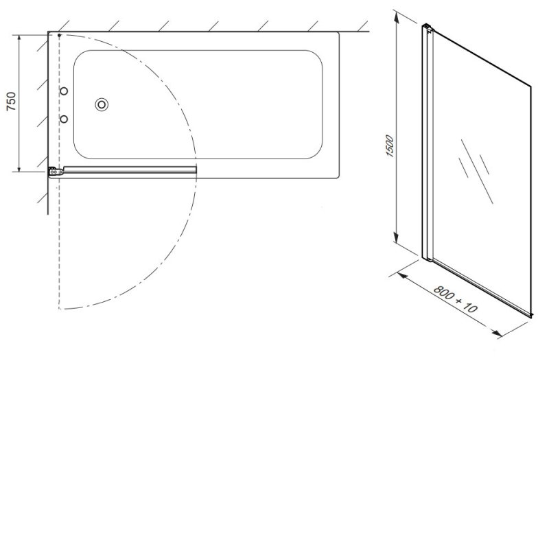 Signature Single Square Hinged Bath Screen 1500mm High x 800mm Wide - 6mm Glass