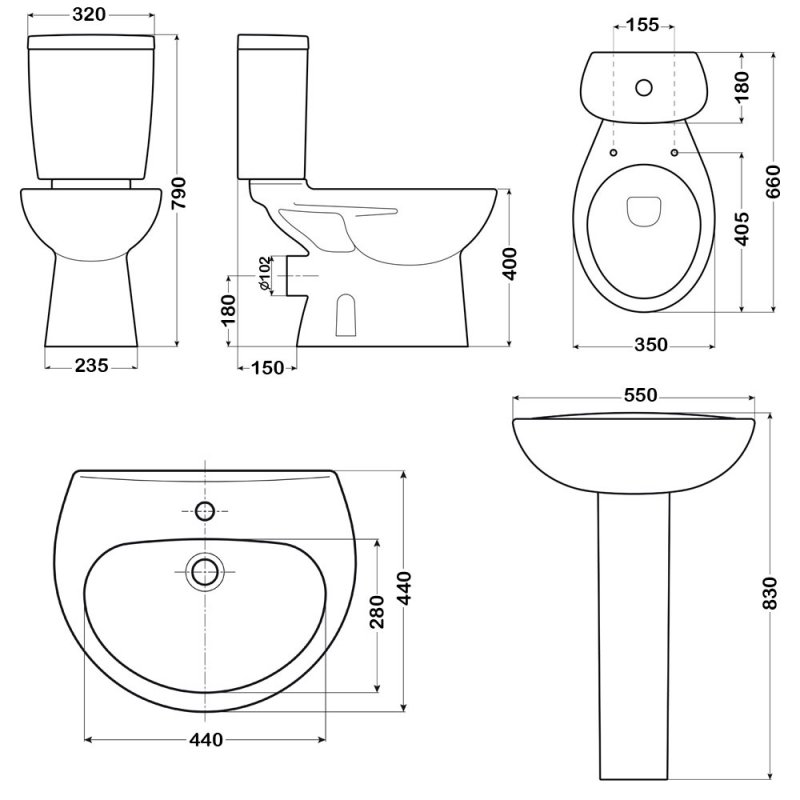 Verona Promenade Bathroom Cloakroom Suite Close Coupled Toilet 600mm Vanity Unit | Product Image