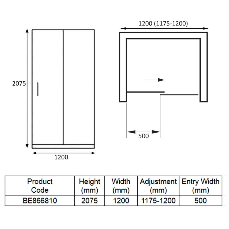 Shower Door Width1200mm