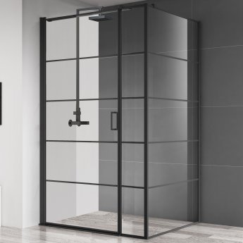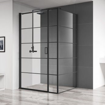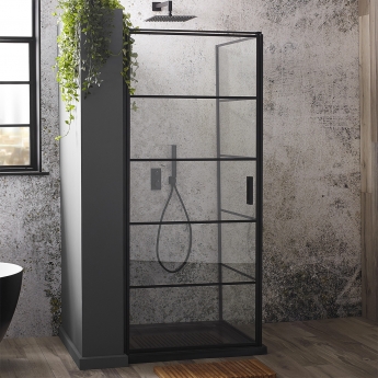This hinged shower door features a matt black frame, with a bold, statement f style across it. It comes in a variety of sizes, depending on the space that you want to install it in. You can choose a 800mm, 900mm, 1000mm or 1200mm sized door. All with the same great style.