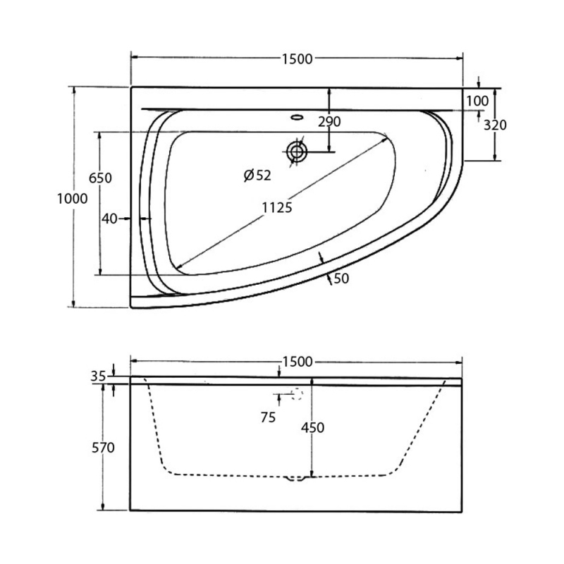 Verona Cleo Offset Corner Bath 1500mm x 1000mm | Product Image