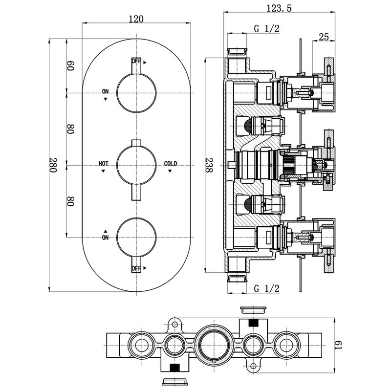 - 2 on/off controls - manages two separate shower outlets