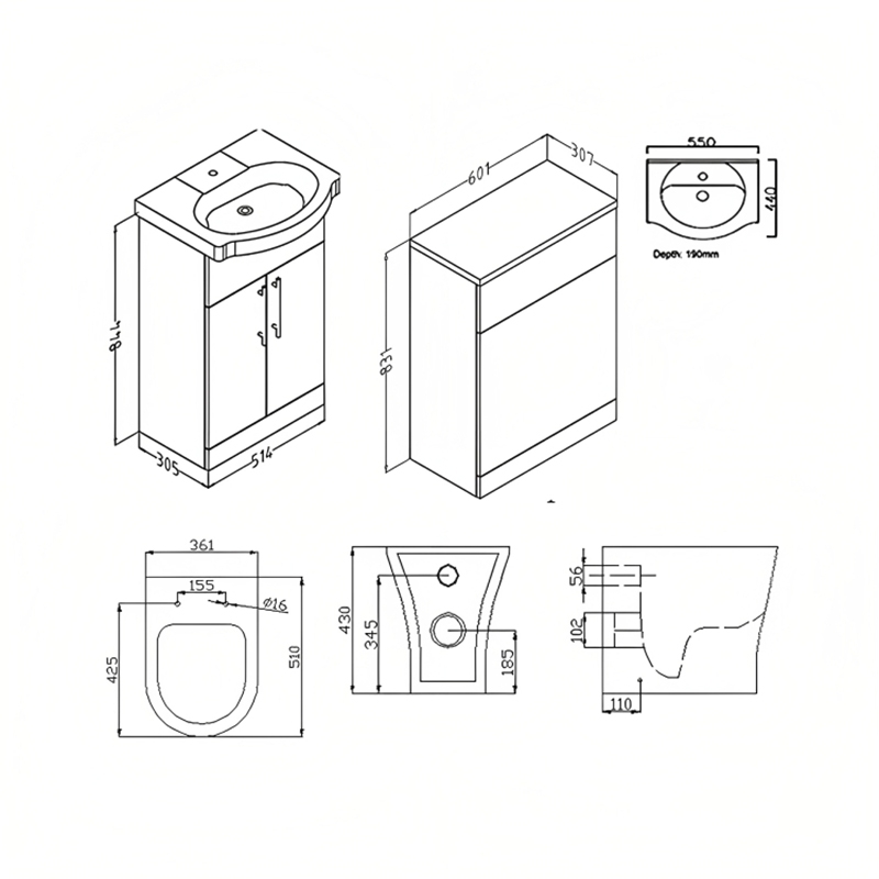 • 550mm vanity unit includes 2 doors for practical and stylish storage