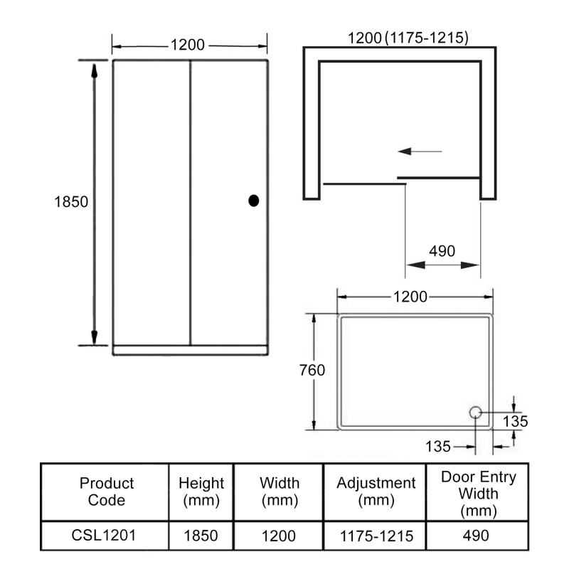 Door Frame Adjustment - 1150mm-1190mm Side panel extra if required for corner installation