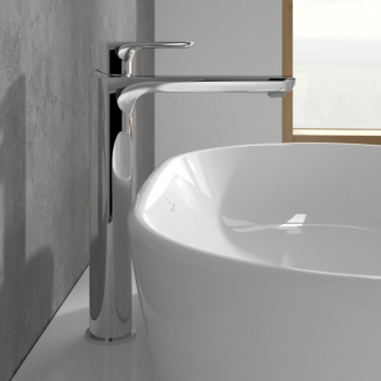 Villeroy & Boch O.novo Start Tall Basin Mixer Tap with Push Button Slotted Waste - Chrome