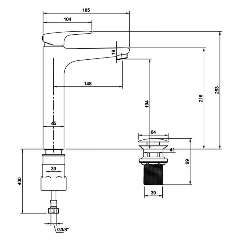 • Practical tap fitting height, ideal for combination with surface-mounted washbasins