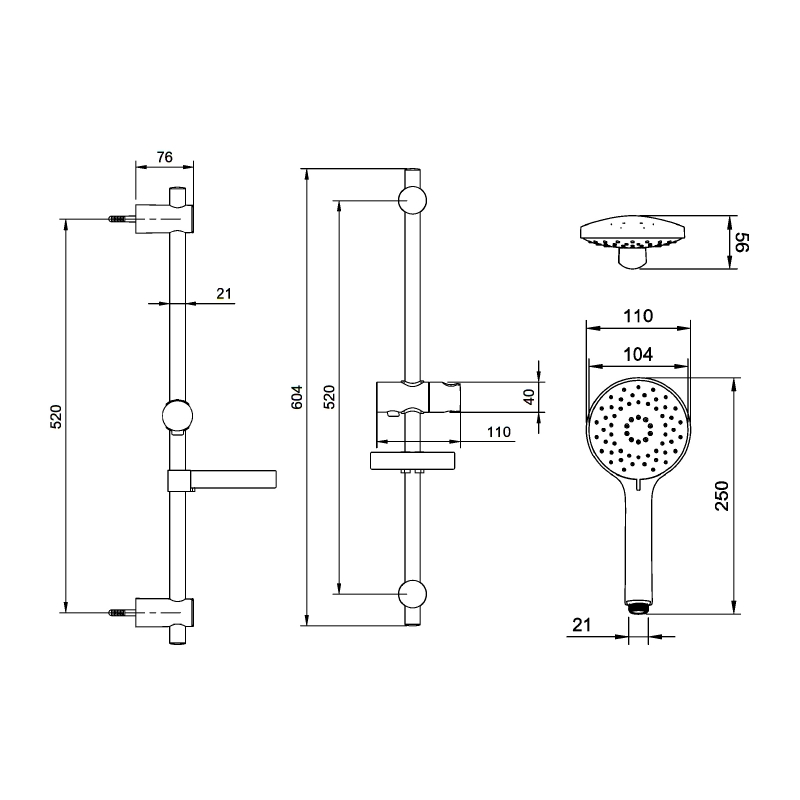 Shower Kit IncludesShower Handset, Shower Hose, Sliding Rail