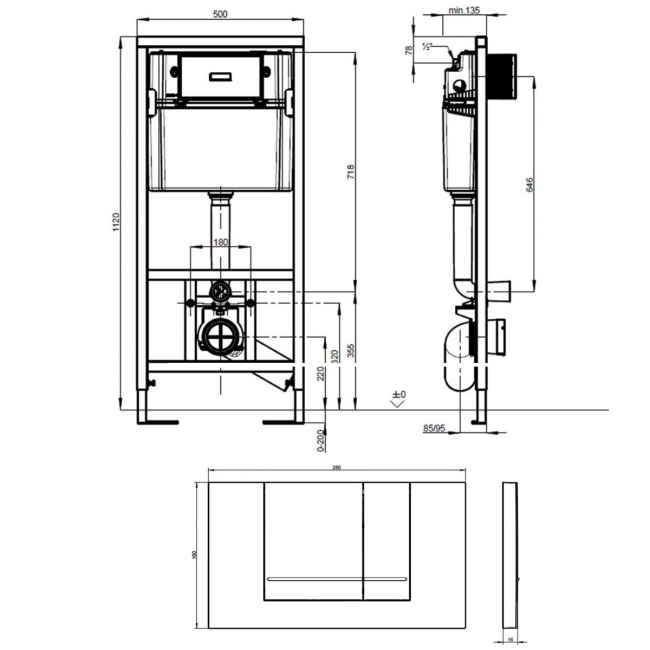 Villeroy & Boch Viconnect Pro Toilet Frame 1120mm with Chrome Flush Plate | Product Image Villeroy & Boch Viconnect Pro Toilet Frame 1120mm with Chrome Flush Plate