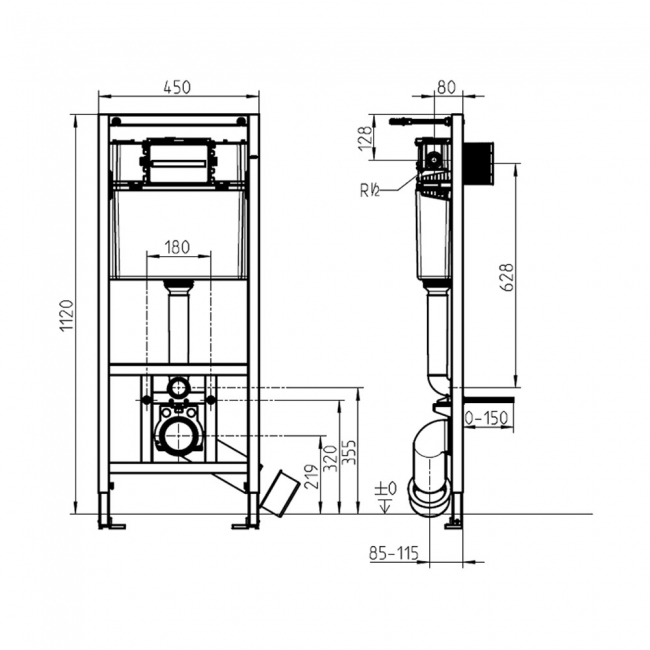 Villeroy & Boch ViPro 2.0 Wall Hung Toilet Frame 1200mm including Dual Flush Cistern | Thumbnail Image Villeroy & Boch ViPro 2.0 Wall Hung Toilet Frame 1200mm including Dual Flush Cistern