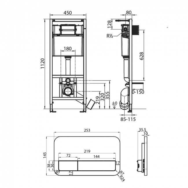 Villeroy & Boch ViPro 2.0 Wall Hung Toilet Frame 1120mm with White Flush Plate