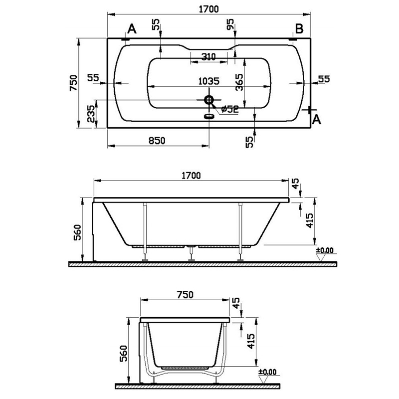 Vitra Optima Double Ended Rectangular Bath 1700mm X 750mm 0 Tap Hole | Product Image Vitra Optima Double Ended Rectangular Bath 1700mm X 750mm 0 Tap Hole