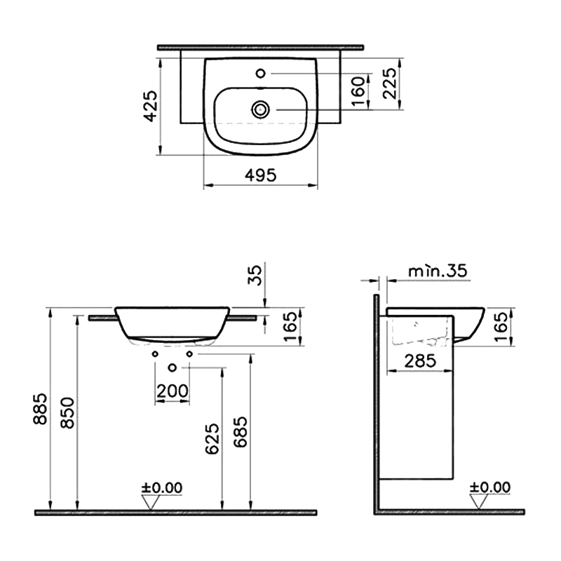 Vitra Zentrum Semi Recessed Washbasin 500mm Wide 1 Tap Hole