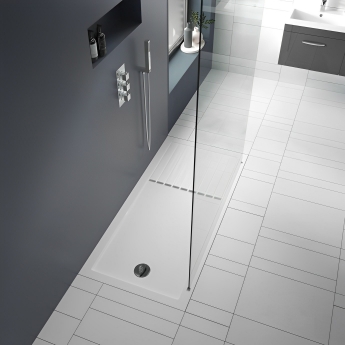 Walk-In shower trays are so called because they are used as the base for a walk-in shower enclosure or wet room. Usually measuring at 1400mm wide or larger, walk-in shower trays often consist of 2 compartments; a showering area and a drying area. Several of our walk-in shower trays are bespoke to the enclosures they fit, and may include curves or a radius to suit specific pieces of glass. However, we also offer many universal models that can fit any walk-in design; for example the Zamori range of low profile trays. Several walk-in trays are designed to fit in a similarly-sized footprint to a standard bath, making them a great replacement when converting a bathroom to a multi-functional wet room, or an area for less-abled users.