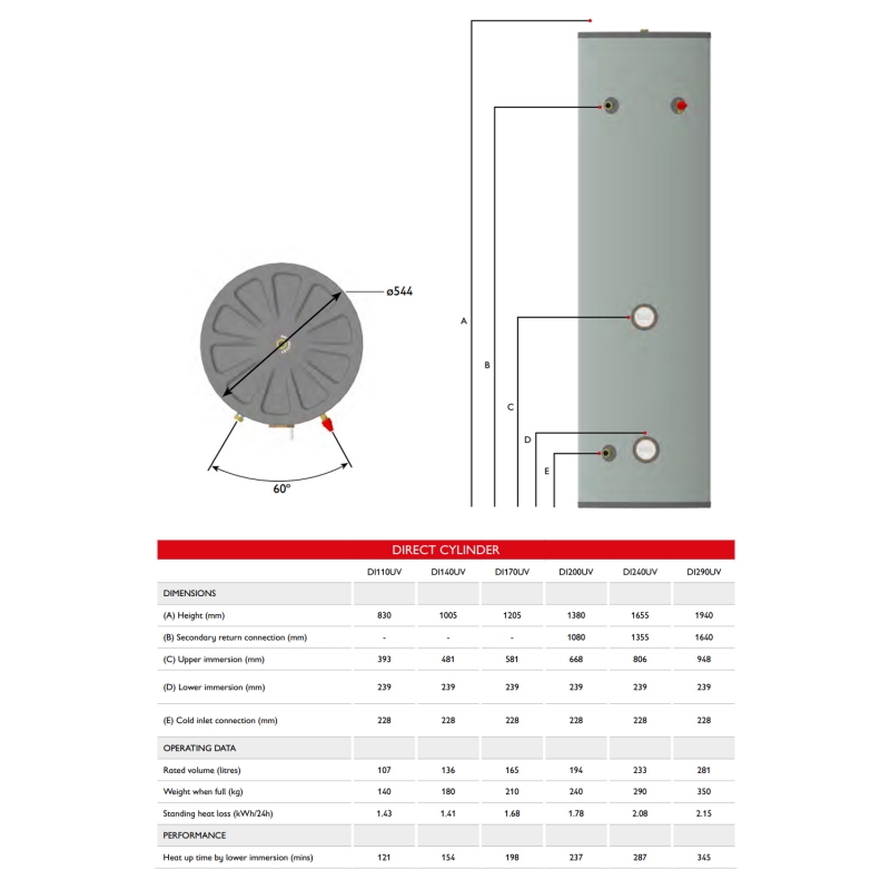 • Cylinder is able to make use of the Economy 7 tariff in order to minimise the cost of hot water