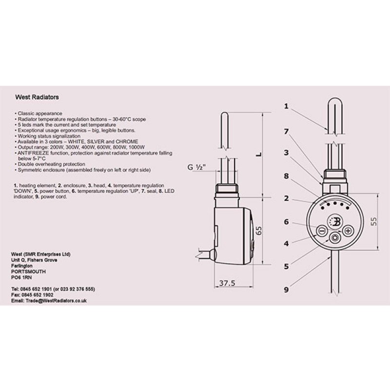 The West MEG1.0-10 Electric Heating Element, 1000 Watts, Chrome is from West Radiators extensive range of radiator valves. Offering great value and tremendous design you expect from a specialist, West Radiator valves provide great service to you the customer. Come with an extensive 2 year guarantee from West Radiators.