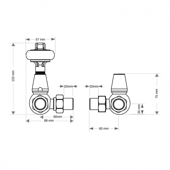 • Traditional corner thermostatic radiator valve pair